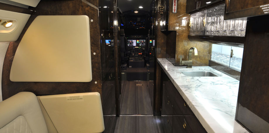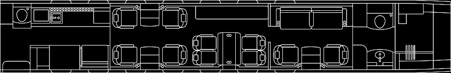 | Floorplan: | Fourteen (14) Passenger Executive Configuration Mid Cabin Divider with Pocket Door |